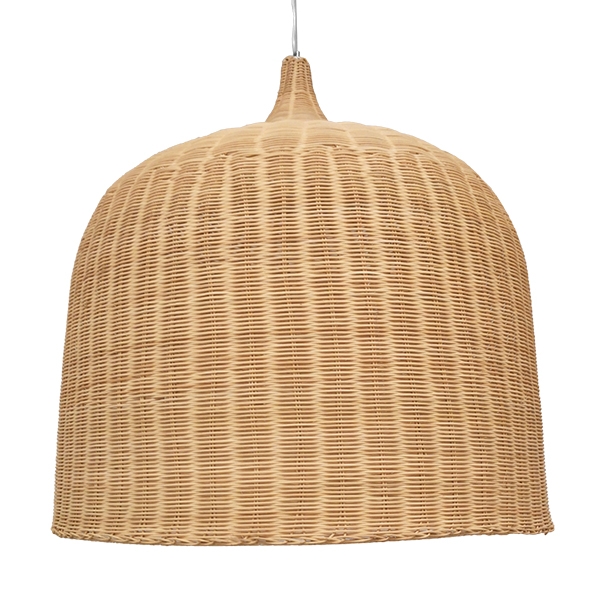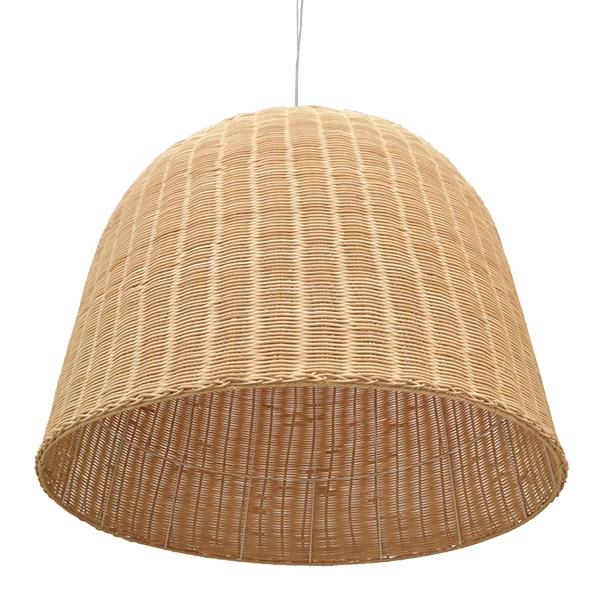 Κρεμαστό Φωτιστικό Μονόφωτο Μπεζ Ξύλινο Ψάθινο Rattan Φ90
