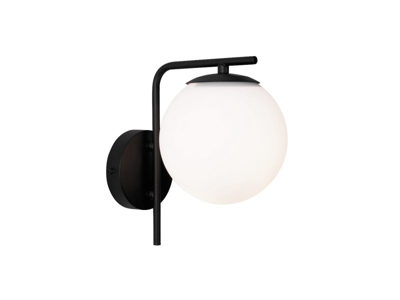 Φωτιστικό απλίκα τοίχου μαύρη μεταλλική με οπαλίνα γυαλί