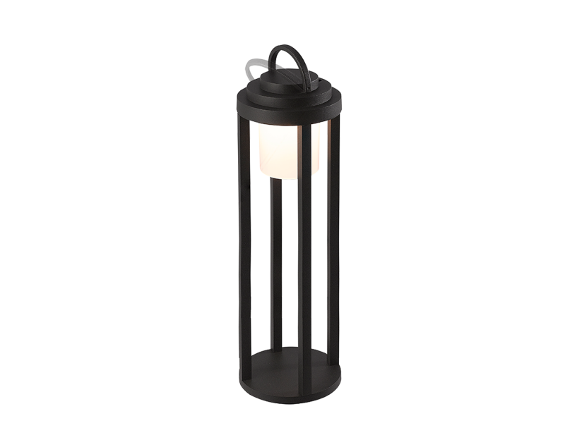 Φωτιστικό εδάφους εξωτερικού χώρου από αλουμίνιο σε μαύρο χρώμα με λευκό πλαστικό κάλυμμα.