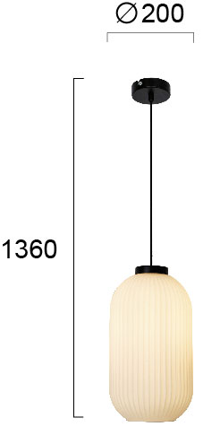 Κρεμαστό λευκό μονόφωτο, με ανάγλυφο γυαλί οπαλίνας και μαύρη ανάρτηση.