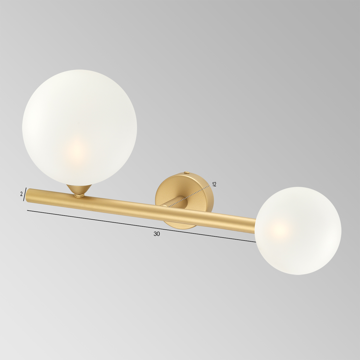 Διαστάσεις : Ύψος: 23cm ,  Μήκος: 30 cm, Διάμετρος ροζέτας: 8 cm, Απόσταση από τοίχο: 12 cm , Διάμετρος μπάλας: 12cm & 15cm